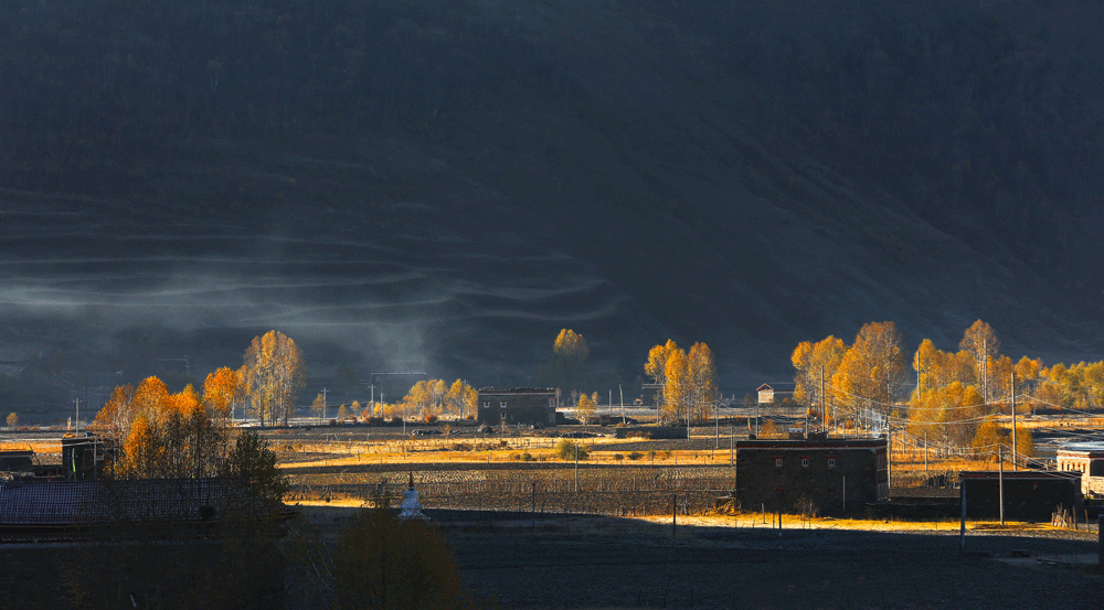 色彩对比:就是利用色彩并列,因色别、纯度、明度不同所产生的相互衬托关系,达到突出主体的目的。其中又包括色相对比、明度对比、饱和度对比。从感情上说,每种色彩都能表达一种情绪和心境,相关色彩相搭配则产生综合甚至复杂的感受。在色彩运用上,一般忌不同冷暖属性的搭配,比如风景中的绿色主体配以天空的蓝色,秋天沼泽里的金黄秋菊,蓝色碧水与黄色沙滩,色彩对比都是自然而协调的。但有时却将大红与大绿进行搭配,却具有强烈的色彩效果,如“万绿丛中一点红”。这是因为单一的色彩或靠色缺少色彩变化,难引起别人的注意,而当主体与周围的色彩形成强烈对比时,主体在画面中的形象便鲜明而突出了。如下图《夜静人未眠》:古村的夜晚,暖意的灯光与幽蓝的天宇,产生了色差,其色素内容的对比让画面生动起来。 此外,还有大小对比、主次对比、动静对比、疏密对比、藏露对比、曲直对比、柔刚对比、横竖对比、宽窄对比、粗细对比、方向对比等,它们是辩证的统一体,相辅相成、不可或缺。从技术角度看,对比关系乃是一种造型方式和构图手段。因此,摄影者在运用时,应遵循表现形式为主题思想服务的创作原则,从实际、从生活出发,一切服务服从于内容,才能取得和谐统一的艺术效果。空间感的表现 俗话说,“画以深远为贵”。也就是说,风光摄影应重视空间感的表现,注重地面上景物与景物之间的空间距离感。在摄影实践中,对空间的感受与透视规律有关,因此利用透视上的变化,可以增强画面空间感。透视现象有线条透视和影调透视之分。